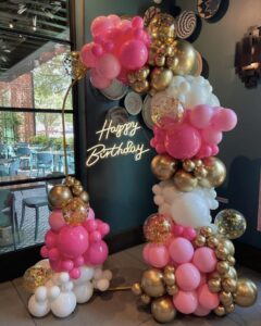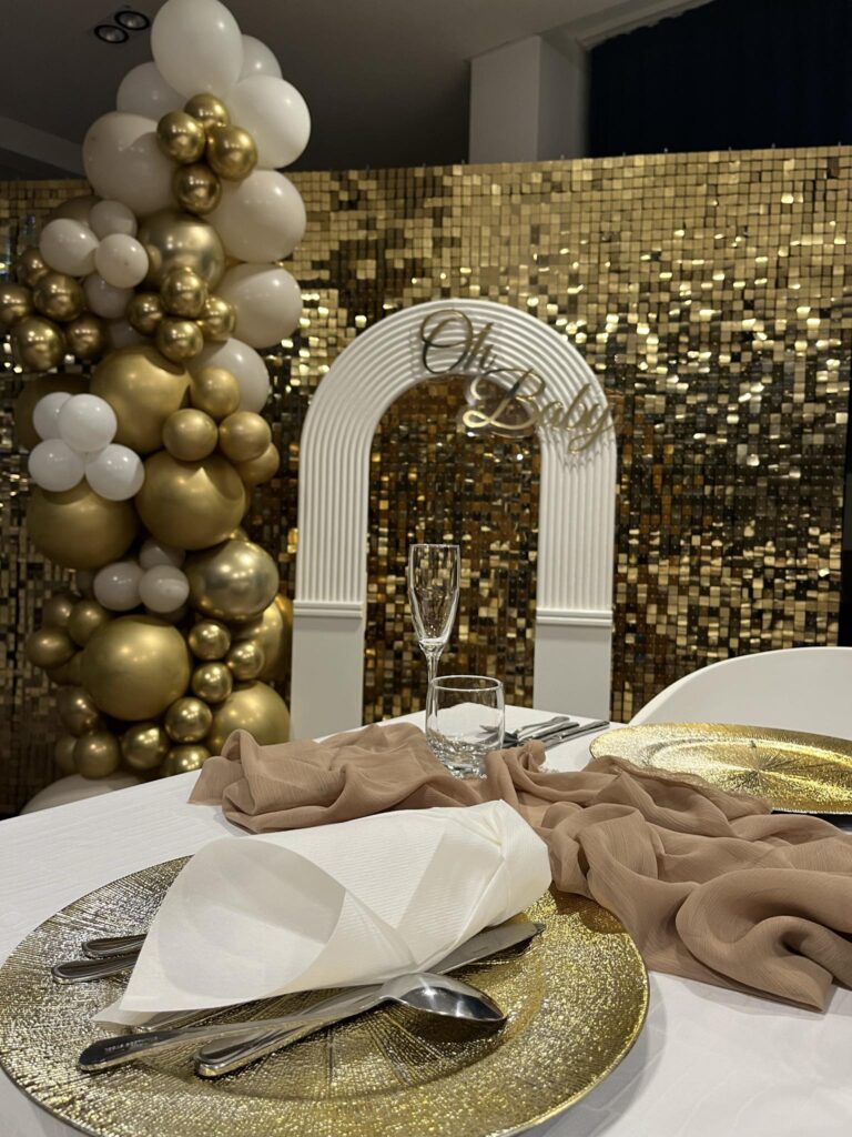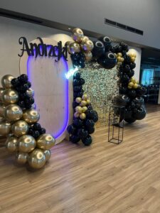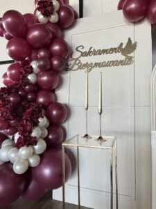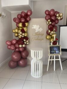 - Nowoczesne dekoracje i oprawa wizualna – stylowe ścianki dekoracyjne z balonami, kwiatami i personalizowanymi akcentami – efektowna fotobudka 360°, która przyciąga spojrzenia i tworzy niezwykłe wspomnienia – napisy LED, meble eventowe oraz szeroka gama dodatków do wypożyczenia