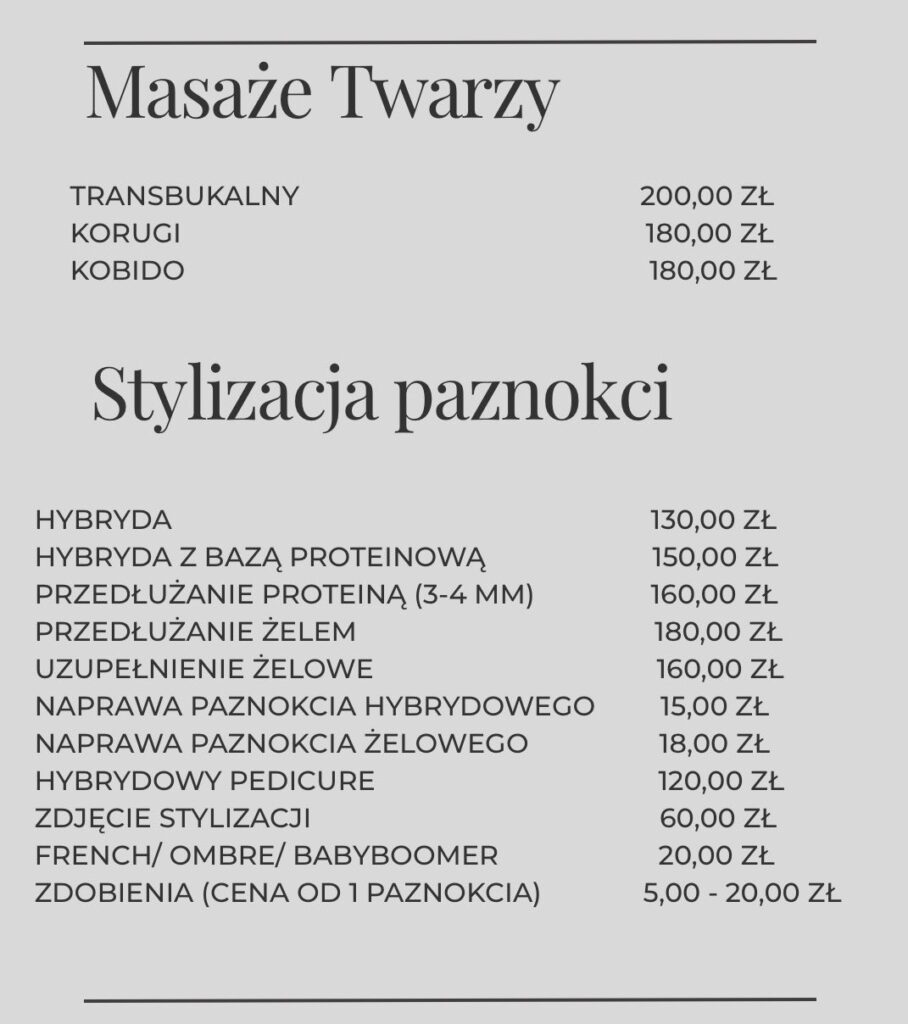 Prowadziłam swój salon w Wielkiej Brytanii przez 7 lat, gdzie zdobyłam ogromne doświadczenie w stylizacji paznokci, oraz w masażu twarzy Kobido i kinesiotapingu estetycznym.