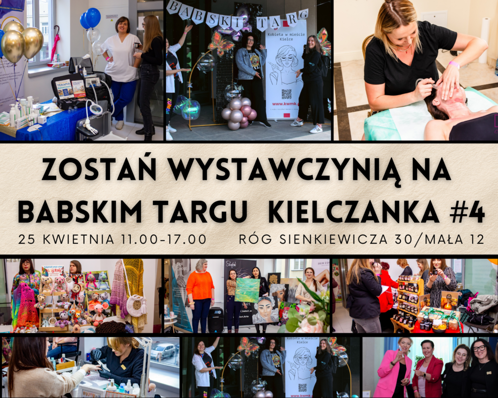 Zapraszamy Was na kolejną edycję wyjątkowego, nafaszerowanego dobrymi intencjami, tworzonego przez kobiety dla kobiet – Babskiego Targu Kielczanka. Tym razem spotkamy się 25 kwietnia w samym sercu Kielc – na ulicy Sienkiewicza 30!